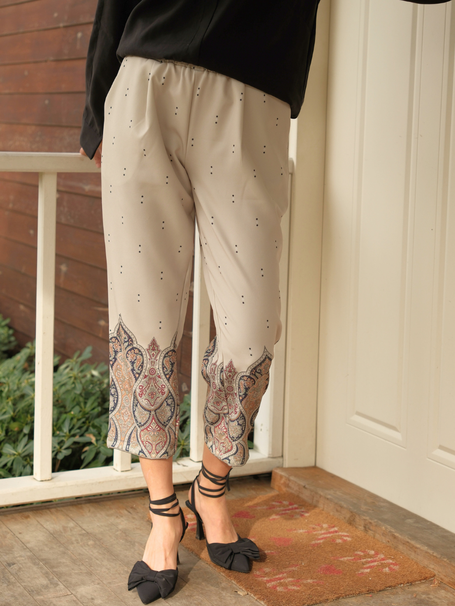 Rahatlığın ve özgün stilin buluştuğu bu pantolon, etnik desenleriyle sıradanlıktan uzak, dikkat çekici bir görünüm sunar. Hafif yapısı ve %100 pamuk kumaşı sayesinde dört mevsim konforla kullanılabilir. Bel kısmındaki esnek yapısı gün boyu hareket özgürlüğü sağlarken şıklığınızdan da ödün vermez. Bohem ruhunu stilinle buluşturmak isteyenler için ideal bir parça.